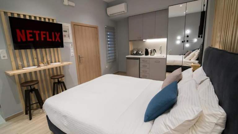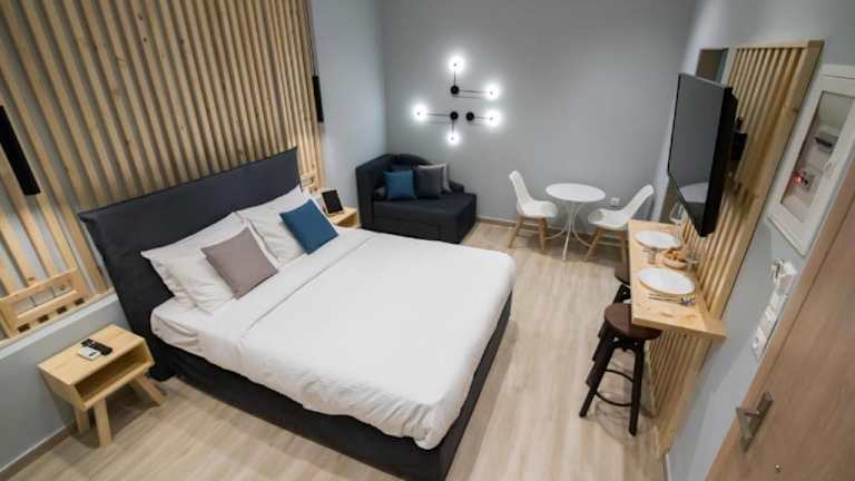 Preveza Suitestay Apartments Dodonis 28 bietet klimatisierte Übernachtungsmöglichkeiten mit kostenlosem WLAN und Zugang zu einer Terrasse. Die Apartments sind mit einer voll ausgestatteten Küche ausgestattet, einschließlich Kühlschrank, Herdplatte, Kaffeemaschine und Wasserkocher. Jedes Apartment verfügt über einen Esstisch sowie einen Flachbild-TV mit Kabelkanälen. Das eigene Badezimmer ist mit einer Dusche, kostenlosen Pflegeprodukten und einem Haartrockner ausgestattet.