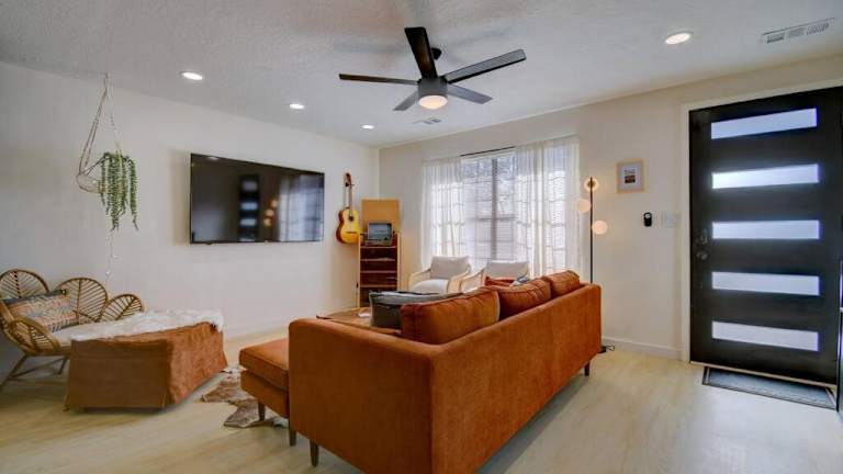 Verbringen Sie einen unvergesslichen Aufenthalt im Prickly Pear@Cactus Flower-2Br2Bath/HOT TUB! in Albuquerque. Dieses Ferienhaus bietet Ihnen nicht nur eine komfortable Unterkunft, sondern auch einen Whirlpool für maximale Entspannung. Die Lage ist ideal, da Sie den ABQ BioPark - Zoo und das National Hispanic Cultural Center in kurzer Entfernung erreichen können. Genießen Sie Ihren Aufenthalt in diesem klimatisierten Ferienhaus mit zwei Schlafzimmern, einem Wohnzimmer und einer voll ausgestatteten Küche. Die Annehmlichkeiten wie Handtücher und Bettwäsche sind ebenfalls inklusive.
