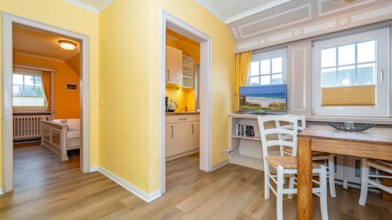 Die Apartments im Priel-Hüs sind geräumig und bieten Ihnen viel Platz zum Entspannen. Sie sind gemütlich eingerichtet und verfügen über ein klassisches Interieur. Bettwäsche und Handtücher können gegen Aufpreis zur Verfügung gestellt werden. Die Apartments sind mit einer voll ausgestatteten Küche ausgestattet, die über einen Geschirrspüler und eine Kaffeemaschine verfügt.
