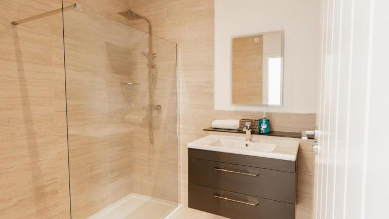 Die Wohnung verfügt über zwei Schlafzimmer, ein Wohnzimmer mit Flachbild-TV und eine voll ausgestattete Küche mit Kühlschrank und Geschirrspüler. Es gibt zwei Badezimmer, die mit kostenlosen Pflegeprodukten ausgestattet sind. Handtücher und Bettwäsche werden zur Verfügung gestellt. Die Unterkunft ist für Erwachsene und Nichtraucher ausgelegt.