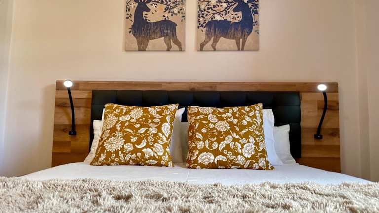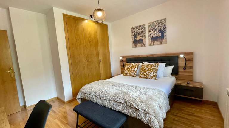 Die Ferienwohnung umfasst zwei Schlafzimmer, ein Wohnzimmer, einen Flachbild-TV sowie eine komplett ausgestattete Küche mit Kühlschrank und Geschirrspüler. Es sind zwei Badezimmer mit Dusche vorhanden. Handtücher und Bettwäsche werden bereitgestellt. Zudem bietet die Wohnung einen Balkon mit Bergblick.
