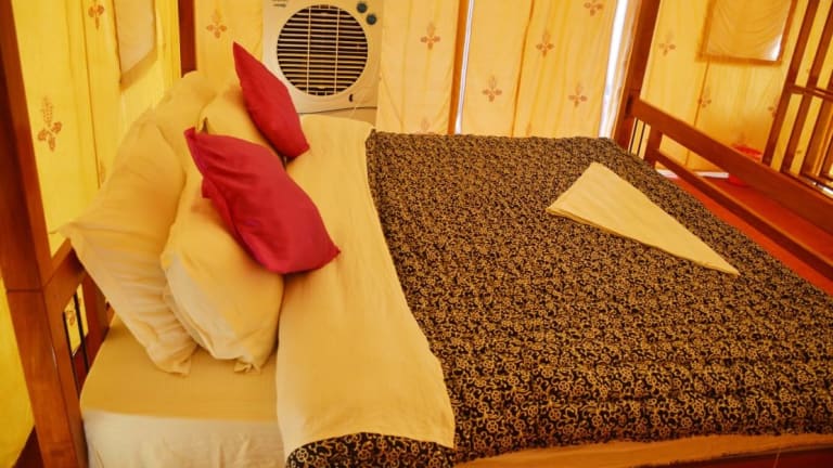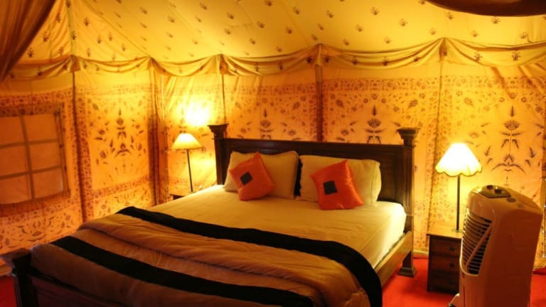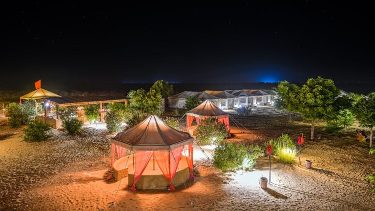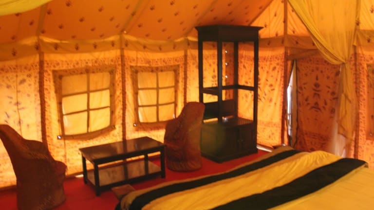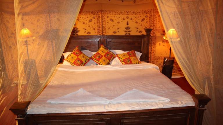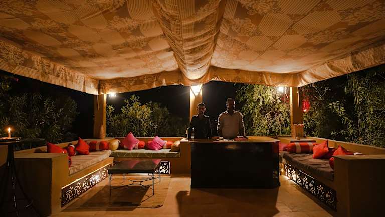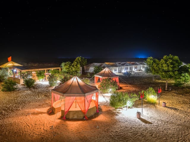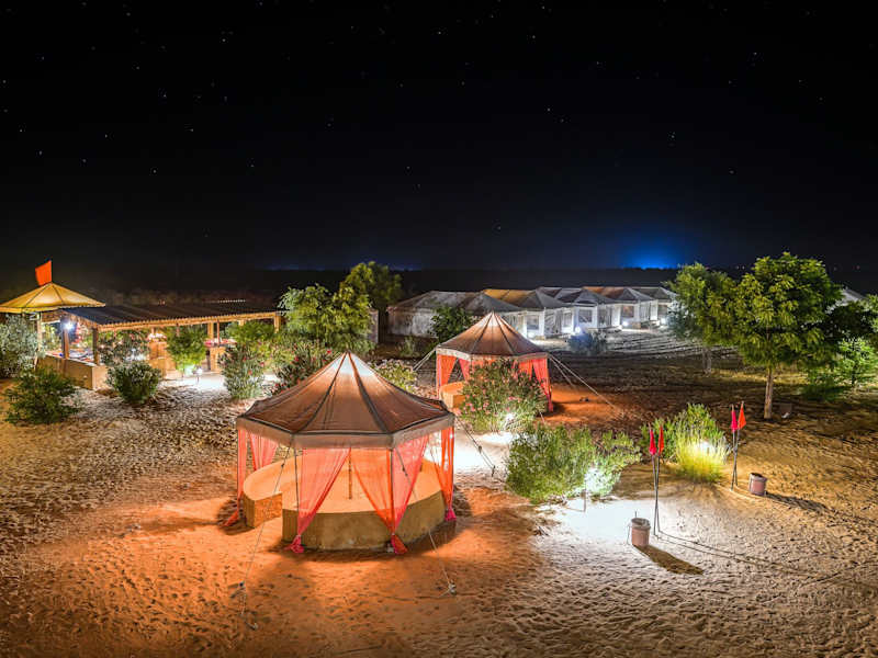 Das Prince Desert Camp liegt nur 45 km von der beeindruckenden Festung Jaisalmer entfernt und bietet eine ideale Lage für Ausflüge in die Umgebung. Der Nationalpark Desert ist nur 2,6 km entfernt und lädt zu aufregenden Erkundungstouren ein. In der Nähe finden Sie auch die historischen Gebäude Patwon Ki Haveli und Salim Singh Ki Haveli. Der Flughafen Jaisalmer ist ebenfalls gut erreichbar und liegt nur 40 km entfernt.