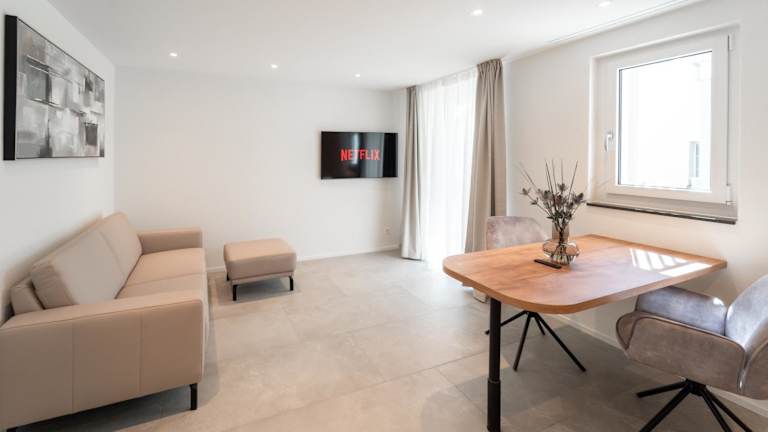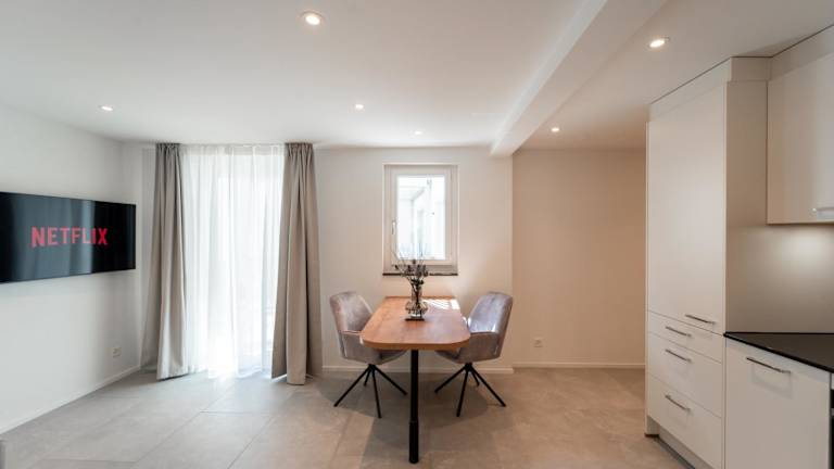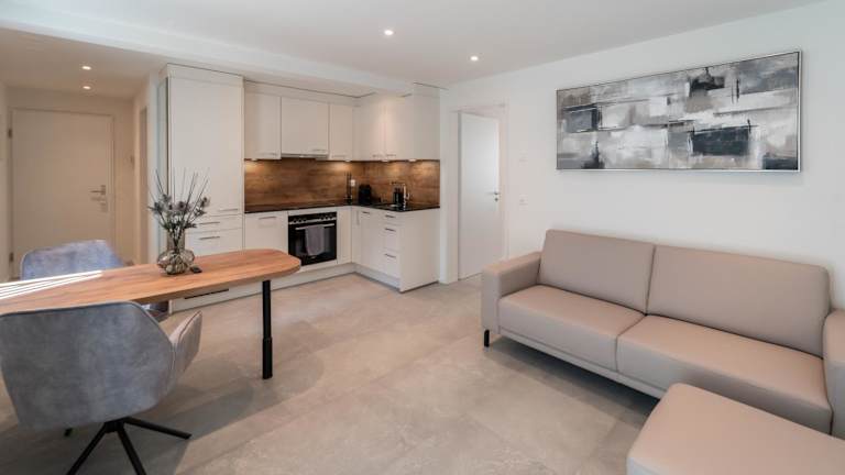 Die Ferienwohnung verfügt über ein Schlafzimmer sowie eine voll ausgestattete Küche, die mit einem Kühlschrank und einem Geschirrspüler ausgestattet ist. Zu den Annehmlichkeiten gehören ein Flachbild-TV, ein Sitzbereich und ein Badezimmer mit einer Dusche. Handtücher und Bettwäsche sind ebenfalls vorhanden.