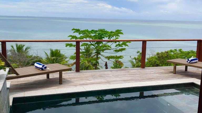 Die Private Oceanfront Fijian Villa verfügt über einen Außenpool, eine Gemeinschaftslounge und eine Terrasse. Diese Unterkunft bietet Übernachtungsmöglichkeiten und besticht durch einen eigenen Pool sowie kostenloses WLAN und Meerblick.