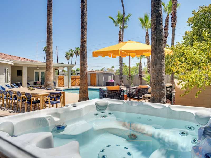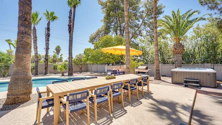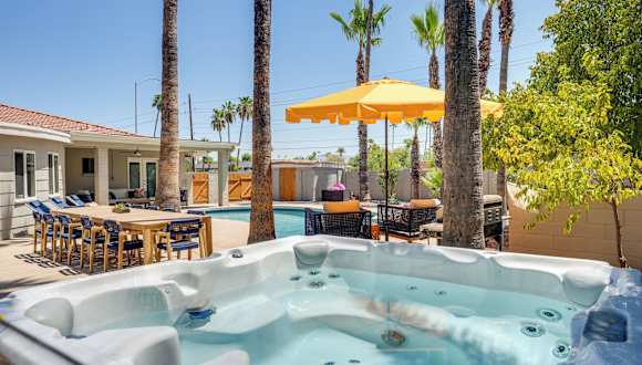 Private Pool and Hot Tub Spacious Scottsdale Home! bietet klimatisierte Übernachtungsmöglichkeiten mit einer Veranda oder einem Patio. Es handelt sich um eine Unterkunft im Erdgeschoss, die mit einem eigenen Pool und einem Whirlpool ausgestattet ist. Die Atmosphäre ist für einen entspannten Aufenthalt ausgelegt und erlaubt keine Feiern oder ähnliche Veranstaltungen.
