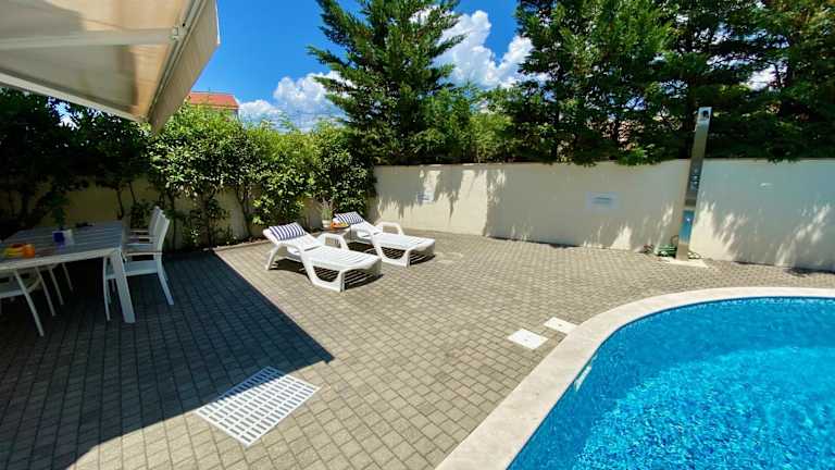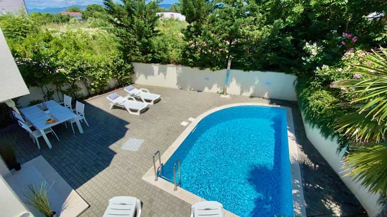 Das Private pool and Mediterranean garden apt Mia bietet klimatisierte Zimmer mit einem TV und einer Terrasse. Die Unterkunft verfügt über eine voll ausgestattete Küche mit einem Geschirrspüler und einem Backofen. Das eigene Badezimmer ist mit einer Dusche ausgestattet. Von Ihrem Zimmer aus haben Sie einen herrlichen Blick auf den Pool.