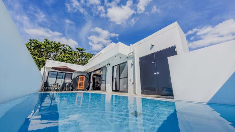 In der Private Pool Villa Motobu können Sie den ganzjährig geöffneten Außenpool nutzen, um sich zu entspannen und abzukühlen. Zusätzlich steht Ihnen eine Sauna zur Verfügung, in der Sie Ihre Sinne verwöhnen können. Die Terrasse bietet einen idealen Ort, um die Sonne zu genießen und sich zu entspannen. Erkunden Sie auch die nahegelegenen Strände und nehmen Sie ein erfrischendes Bad im Meer.