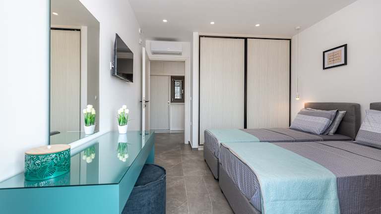 Die Villa besteht aus zwei Schlafzimmern und einem Wohnzimmer. Sie ist mit einer voll ausgestatteten Küche, inklusive Kühlschrank und Kaffeemaschine, sowie einem Badezimmer mit Dusche und kostenlosen Pflegeprodukten ausgestattet. Handtücher und Bettwäsche werden bereitgestellt.