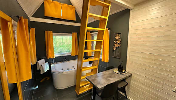 Das Privátní wellness domek RockStar in Smržovka ist ein traumhaftes Ferienhaus, das Ihnen einen erholsamen Aufenthalt mit erstklassigen Wellness-Einrichtungen bietet. Genießen Sie die Whirlpool-Badewanne und den atemberaubenden Bergblick von der Terrasse aus. Das Ferienhaus verfügt über eine gut ausgestattete Küche und ein luxuriöses Badezimmer mit einem Whirlpool und kostenlosen Pflegeprodukten. Entspannen Sie in der Sauna oder im Whirlpool und erkunden Sie die Wasserfälle Szklarki und Kamienczyka, die in der Nähe liegen. Ein wahrhaft entspannendes Erlebnis erwartet Sie im Privátní wellness domek RockStar.