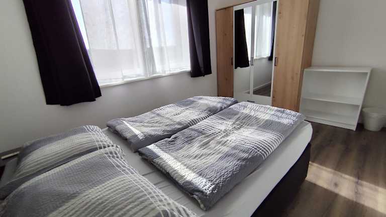 Die Ferienwohnung verfügt über ein Schlafzimmer, eine Küche, die mit einem Kühlschrank und einem Geschirrspüler ausgestattet ist, sowie ein Badezimmer mit Dusche und Haartrockner. Handtücher und Bettwäsche werden ebenfalls bereitgestellt.