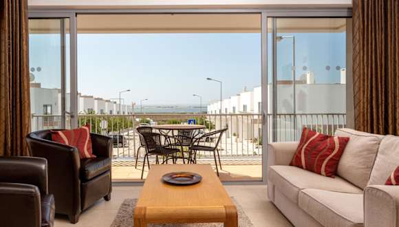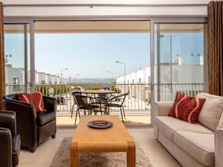 Privilege Sea View Apartment Arte Nova - Fuzeta bietet Übernachtungsmöglichkeiten in einer Ferienwohnung mit einem Außenpool, einem Garten und einer Terrasse. Die Wohnung verfügt über kostenfreies WLAN und einen Balkon mit Meerblick.