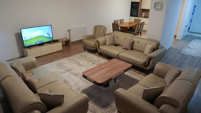 Die Ferienwohnung Prizren City 2 bedroom apartment bietet Übernachtungsmöglichkeiten und ist ausgestattet mit kostenlosem WLAN, Klimaanlage und einer Terrasse. Von der Unterkunft eröffnet sich ein Blick auf die Stadt.