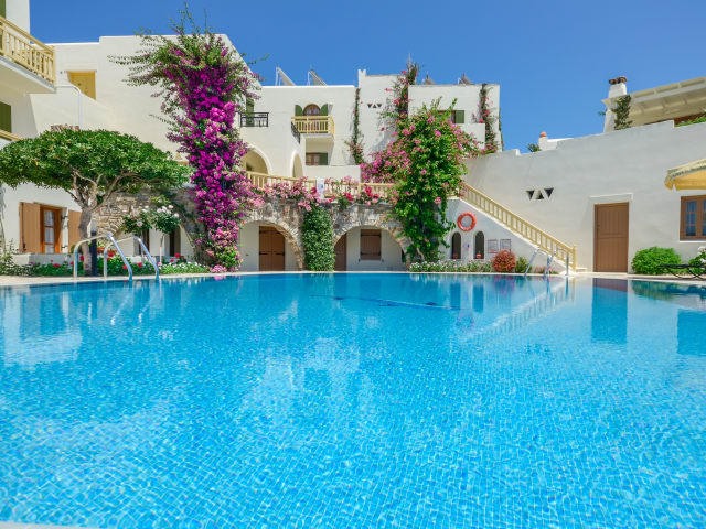 Das Proteas Hotel & Suites verfügt über einen Außenpool, in dem Sie sich an warmen Tagen erfrischen können. Genießen Sie die Sonne auf den Liegestühlen oder erkunden Sie die umliegende Gegend. Das freundliche Personal an der Rezeption hilft Ihnen gerne bei der Organisation von Aktivitäten und Ausflügen, wie zum Beispiel einem Mietwagen, um die Insel Naxos zu erkunden.