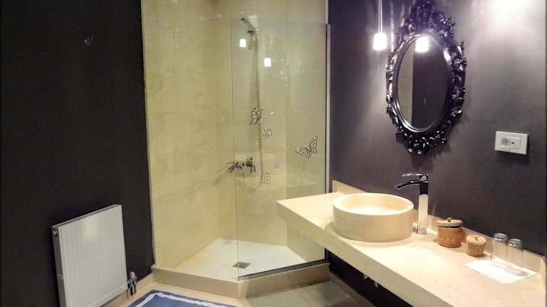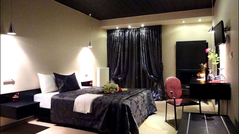 Die Zimmer im Prytaneio Design Hotel sind luxuriös und bieten modernes Design mit warmen Farben. Jedes Zimmer verfügt über einen Balkon und einen Kamin, der für eine gemütliche Atmosphäre sorgt. Zur Ausstattung gehören ein Flachbild-TV, eine Minibar und ein eigenes Bad mit Badewanne oder Dusche sowie kostenfreien Pflegeprodukten. Einige Zimmer bieten sogar eine Whirlpool-Badewanne für zusätzlichen Luxus.