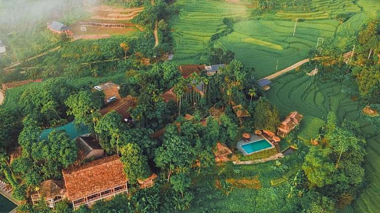 Die Unterkunft Pù Luông Ecolodge befindet sich in Pu Luong, umgeben von einer natürlichen und grünen Landschaft. Die Nähe zu verschiedenen Freizeitaktivitäten und Sehenswürdigkeiten ist gegeben.