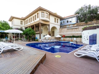 Das Puding Hotel im historischen Stadtteil Kaleici von Antalya bietet eine charmante Unterkunft in 7 historischen Herrenhäusern. Mit einem Außenpool und einer Poolbar können Sie hier eine entspannte Atmosphäre und einen einzigartigen Panoramablick auf die Berge und das Mittelmeer genießen. Die Lage des Hotels in der Nähe des Strandes Mermerli und des alten Yachthafens ist ideal für einen Spaziergang entlang der Küste. Die elegant gestalteten Zimmer sind mit modernen Annehmlichkeiten ausgestattet und bieten kostenfreies WLAN. Das Frühstücksbuffet im Puding Restaurant & Bar bietet einen guten Start in den Tag.