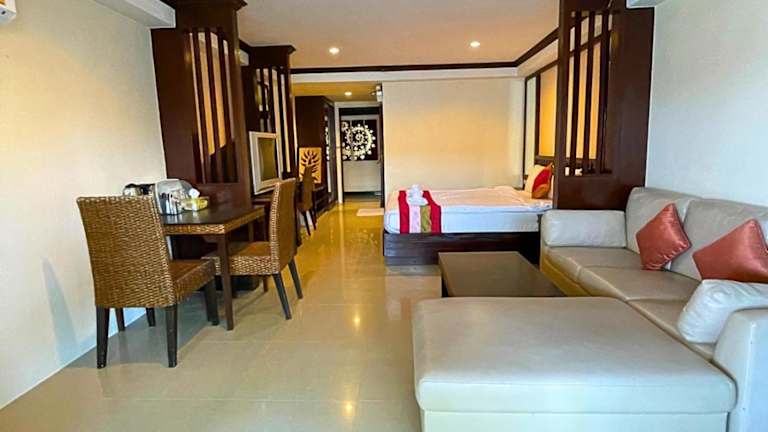 Jedes Zimmer der Unterkunft ist mit einer Klimaanlage, einem Schreibtisch, einem Flachbild-TV, einem eigenen Badezimmer, Bettwäsche, Handtüchern und einer Terrasse mit Poolblick ausgestattet. Zudem stehen den Gästen Kühlschränke in den Zimmern zur Verfügung. Schallisolierte Zimmer sind ebenfalls vorhanden.