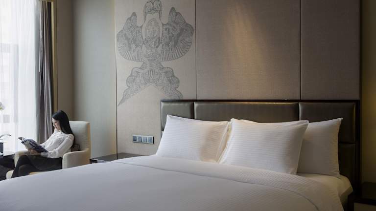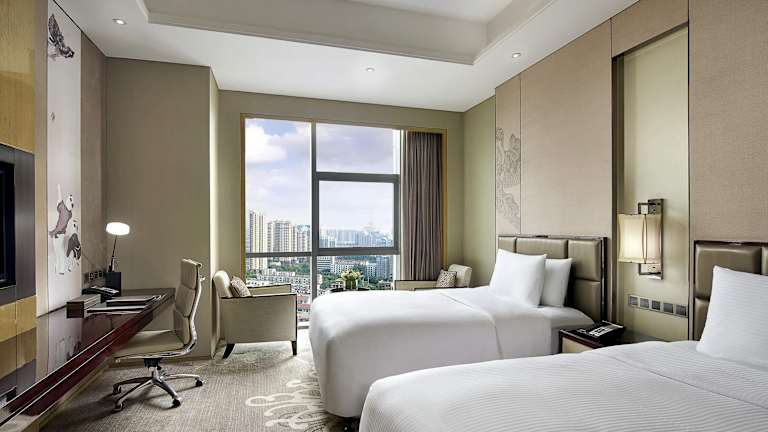 Die Zimmer im Pullman Weifang Wanda sind komfortabel eingerichtet und verfügen über Annehmlichkeiten wie einen TV, Klimaanlage und eine Minibar. Das eigene Bad ist mit einer Badewanne, einem Haartrockner und Bademänteln ausgestattet.
