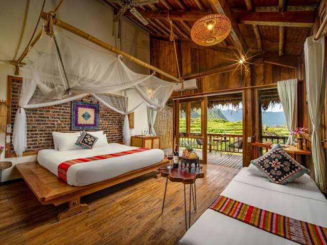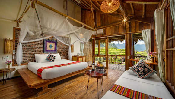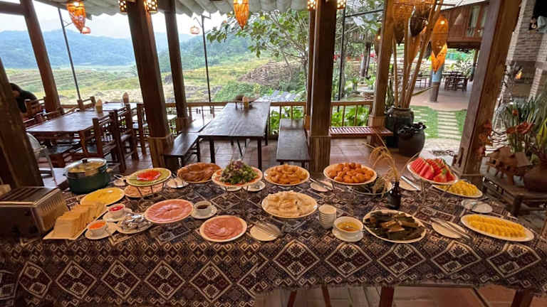 Das Puluong Valley Home in Thanh Hóa ist ein wunderbares Hotel, das Ihnen einen atemberaubenden Blick auf die Berge bietet. Hier können Sie sich entspannen und die Natur genießen. Das Hotel verfügt über ein Restaurant, Zimmerservice, eine Bar, einen Garten, einen saisonalen Außenpool und eine Terrasse. Sie können auch kostenloses WLAN nutzen. Die Zimmer sind komfortabel und einige verfügen über ein eigenes Bad mit Badewanne und kostenfreien Pflegeprodukten. Jeden Morgen wird Ihnen ein köstliches asiatisches Frühstück serviert. Sie können auch ein Auto mieten und die Umgebung mit dem Fahrrad erkunden. Der nächstgelegene Flughafen ist etwa 87 km entfernt und die Unterkunft bietet einen kostenpflichtigen Flughafentransfer.