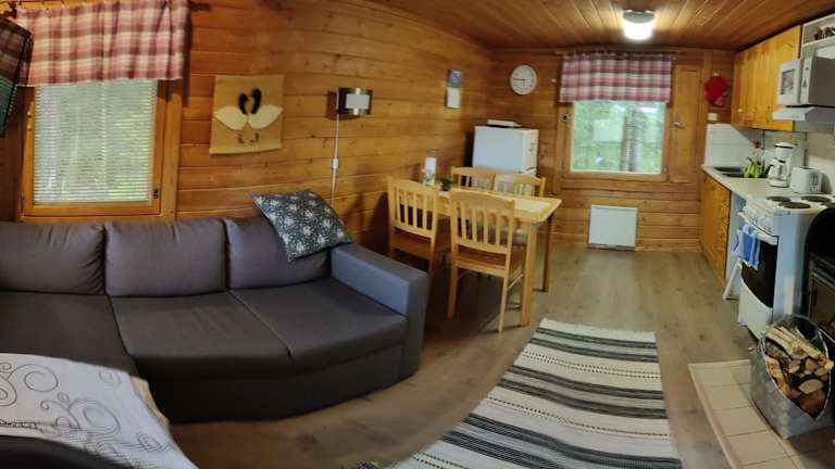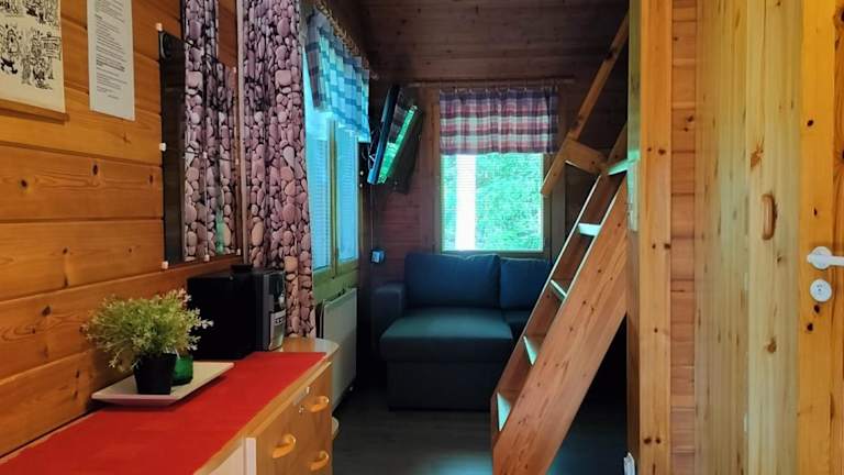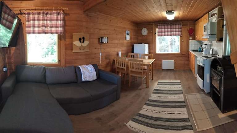 Das Chalet des Punatulkku verfügt über ein Schlafzimmer, eine komplett ausgestattete Küche mit Kühlschrank und Backofen, einen Flachbild-TV, einen gemütlichen Sitzbereich und ein Badezimmer mit Dusche. Hier können Sie sich wie zu Hause fühlen und Ihren Aufenthalt in vollen Zügen genießen.