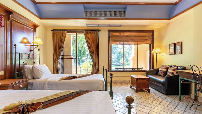 Die Zimmer im Pung-Waan Resort & Spa sind hell und geräumig und verfügen über einen eigenen Balkon, von dem aus Sie einen herrlichen Blick auf die Umgebung genießen können. Die klimatisierten Zimmer sind mit großen Fenstern ausgestattet und bieten somit viel Tageslicht. Die Badezimmer sind mit kostenfreien Pflegeprodukten ausgestattet, um Ihren Aufenthalt so angenehm wie möglich zu gestalten.