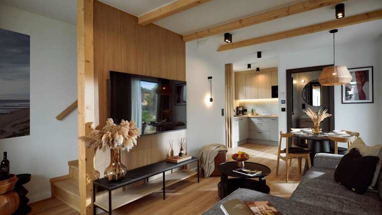 Die Zimmer sind ausgestattet mit einem Flachbild-TV, einem voll ausgestatteten Küchenbereich einschließlich Kühlschrank, Geschirrspüler, Mikrowelle und Herdplatte. Ein Sitzbereich, ein Gemeinschaftsbad mit Dusche und Haartrockner sowie eine Kaffeemaschine und ein Wasserkocher bieten zusätzliche Annehmlichkeiten.