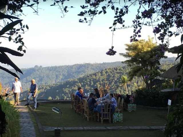 Puri Lumbung – a unique eco-resort honoring traditional Balinese culture, environment, healing, wellness, architecture, design, arts, farming and cuisine. Puri Lumbung, meaning ‘rice barn palace’, is an eco-resort set in a stunning location high in the cool, fresh and clean mountain air of Munduk in North Bali, with spectacular views of dramatic mountain peaks, rice fields, lush green valleys, clove plantations and the coastline of the Java Sea in the distance. Experience a different kind of Balinese beauty, away from the heat. Surrounded by nature at its finest, Puri Lumbung offers a peaceful, relaxing, rejuvenating experience, whilst allowing you to be as adventurous as you like. Relax and take in the view from one of the ‘rice barn palaces’ – 80 year old rice barns which have been converted into lovely cottages, or one of the luxurious villas scattered along the mountainside. Rejuvenate with traditional healing and wellness treatments at our on-site Arathi Spa & Ayurvedic Munduk Bali. Choose from one of our special 3 or 4 day Puri Lumbung Packages for a complete program of activities, or create your own experience. Take one of our traditional Balinese classes including cooking, making offerings, weaving, crafts, herbal medicine, bamboo instrument making or take a Balinese or Indonesian language class. Trek and hike through vivid green rice fields, to waterfalls, fertile plantations, along mountainsides and through traditional villages, with one of our English speaking guides. Rent a mountain bike and explore the glorious natural scenery of Munduk and our surrounding villages. Watch the sun set over the mountain tops with a cocktail or herbal tea in hand at the Sunset Courtyard. Practice yoga and meditation in peaceful surrounds or join one of the many yoga retreats visiting regularly. Feast on traditional Balinese and Indonesian delights or try our vegetarian and Western offerings at our wonderful Warung Kopi Bali Restaurant & Artist Bar. Bring a group and use one of our meeting halls and rooms for retreats, events, seminars, workshops and conferences. Puri Lumbung is a wonderful place of healing, rejuvenating, retreat and relaxation, adventure and fun for the whole family to enjoy.