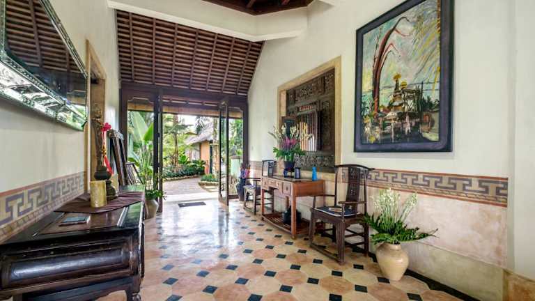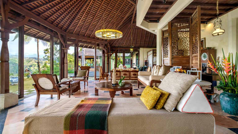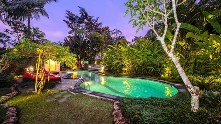 Entfliehen Sie dem Alltag und erleben Sie einen stilvollen Familienurlaub im Puri Naga Toya Bali in Penginyahan. Diese Villa bietet Ihnen einen Außenpool, einen Garten und eine Gemeinschaftslounge mit kostenfreiem WLAN und herrlichem Bergblick. Genießen Sie den Komfort von 4 Schlafzimmern, einer voll ausgestatteten Küche und 3 Badezimmern. Jeden Morgen erwartet Sie ein köstliches kontinentales Frühstück. Nutzen Sie die Gelegenheit, die Umgebung mit dem Fahrrad zu erkunden. In der Nähe befinden sich auch Sehenswürdigkeiten wie das Kunstmuseum Neka und die Reisterrasse Tegallalang. Der internationale Flughafen Denpasar ist nur 53 km entfernt.