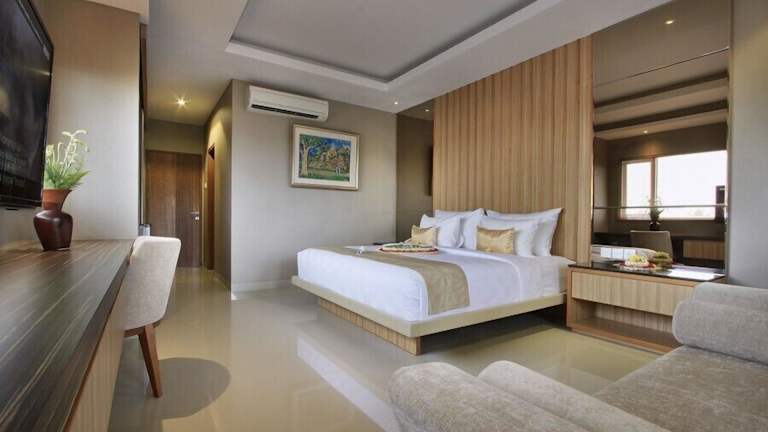 Die Zimmer im Puri Padma Hotel sind klimatisiert und bieten allen Komfort, den Sie für einen angenehmen Aufenthalt benötigen. Jedes Zimmer verfügt über einen Flachbild-Kabel-TV, einen Kleiderschrank, einen Sitzbereich, einen Safe und einen Wasserkocher. Das eigene Badezimmer ist mit einer Dusche, einem Haartrockner, Hausschuhen und kostenfreien Pflegeprodukten ausgestattet. Vom Zimmer oder der Terrasse aus können Sie einen Blick auf den Garten und den Pool genießen.
