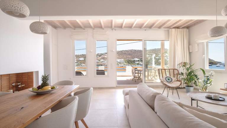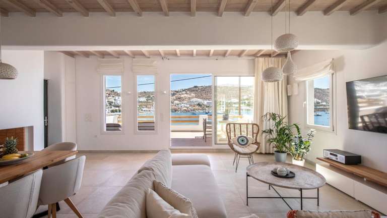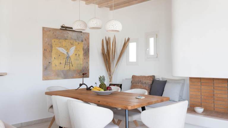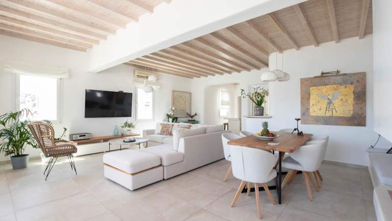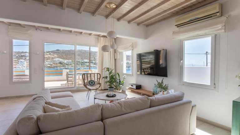 Das Pursue Your Day Dreams ist ein stilvoll eingerichtetes Apartment im traditionellen Kykladenstil. Das Dekor ist hauptsächlich in Weiß gehalten, was ein helles und luftiges Ambiente schafft. Die Wohnung verfügt über 2 Schlafzimmer und 2 Badezimmer, die Ihnen den Komfort und die Privatsphäre bieten, die Sie benötigen. Das geräumige Wohnzimmer ist mit einem gemütlichen Kamin ausgestattet, ideal für gemütliche Abende. Der Essbereich lädt zum geselligen Beisammensein ein und die gut ausgestattete Küche bietet Ihnen die Möglichkeit, Ihre eigenen Mahlzeiten zuzubereiten.