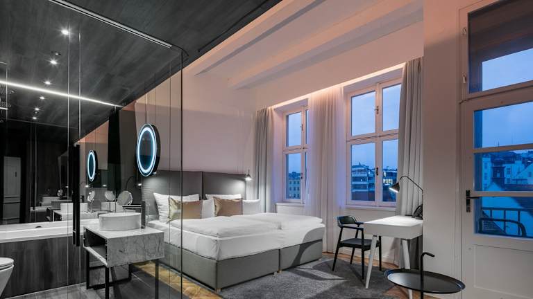Die Zimmer im Pytloun Boutique Hotel Prague sind modern und stilvoll eingerichtet. Jedes Zimmer verfügt über eine individuell kontrollierbare Klimaanlage, Sat-TV, eine Minibar, einen Safe und kostenfreies WLAN. Das Badezimmer ist mit einer Badewanne mit Sprudelfunktion und Pflegeprodukten ausgestattet. Einige Zimmer bieten zudem eine Terrasse oder einen Balkon.