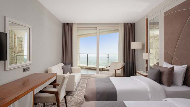 Die Zimmer im Qalaalti Hotel & Spa sind komfortabel und stilvoll eingerichtet. Jedes Zimmer verfügt über einen Flachbild-Sat-TV und einige Zimmer bieten sogar einen separaten Sitzbereich, der zum Entspannen einlädt. Genießen Sie die Aussicht auf die Berge oder den Pool während Sie eine Tasse Tee trinken. Die Zimmer sind mit einem eigenen Bad ausgestattet, das Bademäntel, Hausschuhe und kostenfreie Pflegeprodukte für Sie bereithält. Die Superior Zimmer bieten zusätzlich eine Whirlpool-Badewanne oder eine Sauna für ultimative Entspannung.