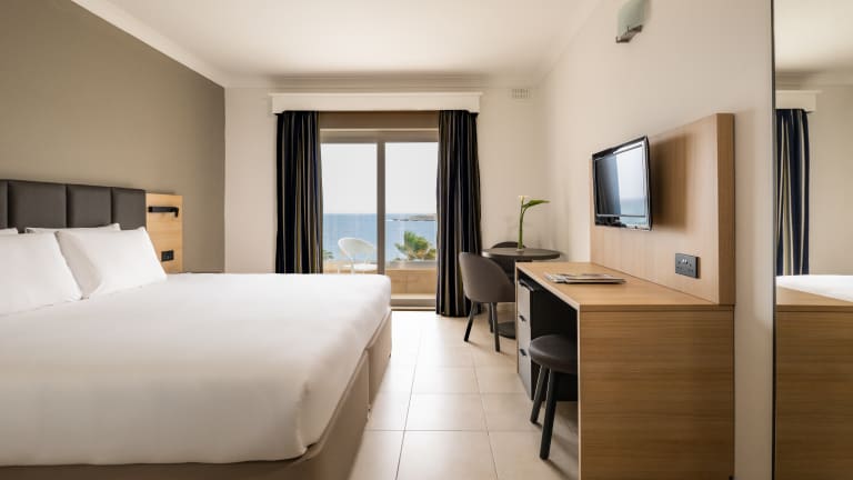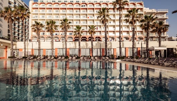 Welcome to Qawra Palace Resort & Spa, your premier all-inclusive destination where luxury meets unparalleled comfort. Set against the stunning backdrop of Salina Bay, our resort boasts 567 exquisite rooms and suites, each offering panoramic views of the azure waters and breathtaking sunsets. Step into your haven of relaxation, where every detail has been meticulously crafted to ensure a truly unforgettable stay. From the moment you arrive, you'll be greeted with warm hospitality and a wealth of amenities to enhance your experience. Indulge in the comforts of home with our well-appointed accommodations, featuring tea and coffee making facilities, flat-screen TVs, fridges, and high-speed in-room Wi-Fi access, allowing you to stay connected throughout your stay. Discover a world of leisure and recreation with our extensive array of facilities. Take a refreshing dip in one of our three indoor and outdoor swimming pools, or unwind in our highly equipped gym. Pamper yourself at our luxurious spa facilities, where you can rejuvenate your mind, body, and soul. Families are catered for with our dedicated kids' play area, mini-golf course, and game zone, and for sports enthusiast, we have our interactive squash court, ensuring endless entertainment for guests of all ages. Embark on a culinary adventure unlike any other as you explore our four distinct restaurants: Caribbean, South American, Asian, and International. Each dining venue offers a delectable selection of both local and international cuisines, tantalizing your taste buds with a symphony of flavors. After a day of exploration, unwind at our cozy café or lounge, where you can sip on refreshing drinks and indulge in delightful snacks. Immerse yourself in the vibrant atmosphere as daily entertainment adds an extra layer of enjoyment to your experience. Whether you seek relaxation, adventure, or simply a place to unwind, Qawra Palace Resort & Spa promises an unforgettable escape. Experience the essence of luxury and hospitality as you create cherished memories in paradise. Welcome to Qawra Palace Resort & Spa, where every moment is a celebration of life's finest pleasures.
