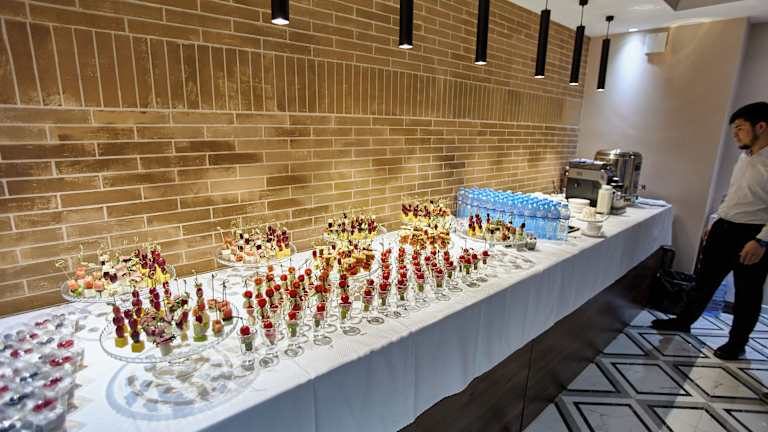 Beim Frühstück werden kontinentale und halal-zubereitete Optionen in Form eines Buffets angeboten.