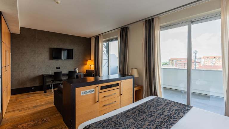 Die klimatisierten Zimmer im B&B Hotel Borgaro Torinese bieten den Gästen einen angenehmen Aufenthalt. Die Zimmer verfügen über kostenloses WLAN, einen LCD-TV mit Sportkanälen und ein komfortables Bett. Für zusätzlichen Komfort stehen den Gästen ein Safe und eine Minibar zur Verfügung.