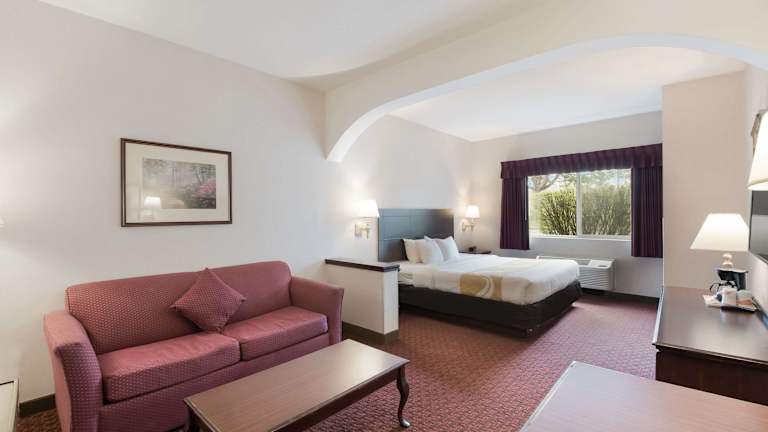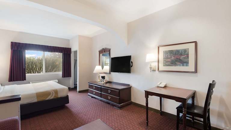Das Quality Inn Grand Suites bietet 86 Nichtraucherzimmer auf drei Etagen, die über einen Aufzug erreichbar sind. Die Zimmer sind komfortabel eingerichtet und verfügen über Annehmlichkeiten wie Klimaanlage, Mikrowelle, Kühlschrank und Tee- und Kaffeezubereitungsmöglichkeiten. Jedes Zimmer hat ein eigenes Bad mit einer Badewanne oder Dusche. WLAN ist im gesamten Hotel kostenfrei verfügbar.