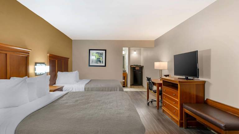 Die Zimmer im Quality Inn Lumberton sind in neutralen Farben gehalten und verfügen über moderne Annehmlichkeiten wie einen Flachbild-TV, eine Mikrowelle und einen Kühlschrank. Die Zimmer sind stilvoll eingerichtet und bieten den Gästen einen angenehmen Rückzugsort nach einem ereignisreichen Tag. Kostenloses WLAN ist ebenfalls verfügbar.
