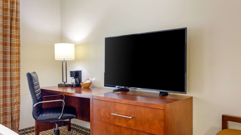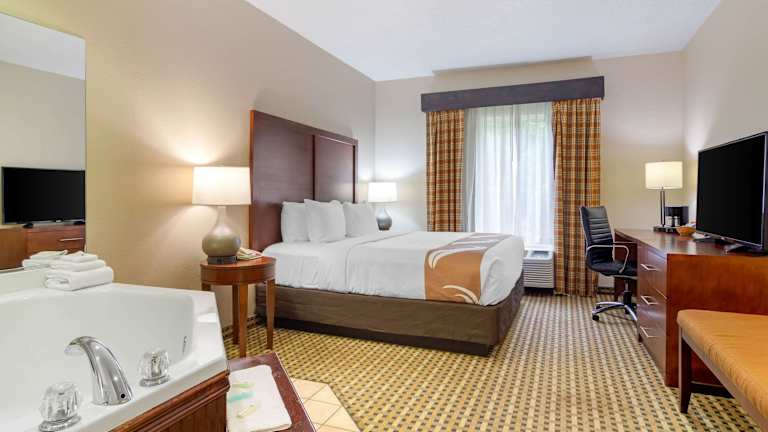 Das Quality Inn & Suites Decatur - Atlanta East bietet komfortable Zimmer mit Annehmlichkeiten wie Kabel-TV, einer Kaffeemaschine, einem Haartrockner, einer Mikrowelle, einem Kühlschrank, einem Bügeleisen und einem Bügelbrett. Einige Zimmer verfügen auch über einen Whirlpool, einen Sessel mit Ottomane, einen Schreibtisch und ein Schlafsofa. Das Hotel bietet auch ein Businesscenter und einen Konferenzraum für geschäftliche Anlässe.