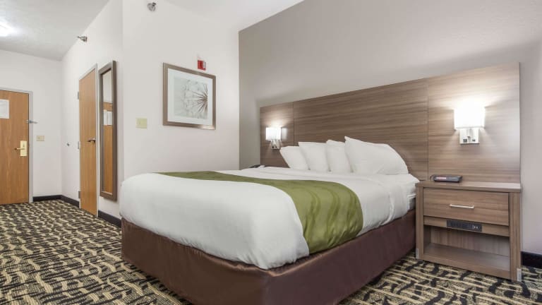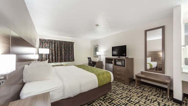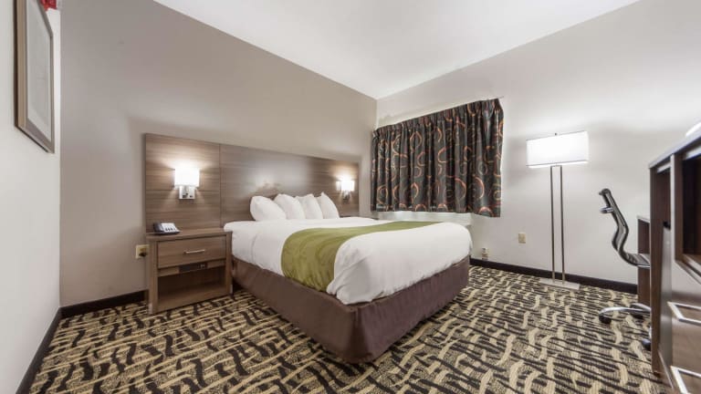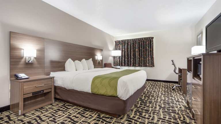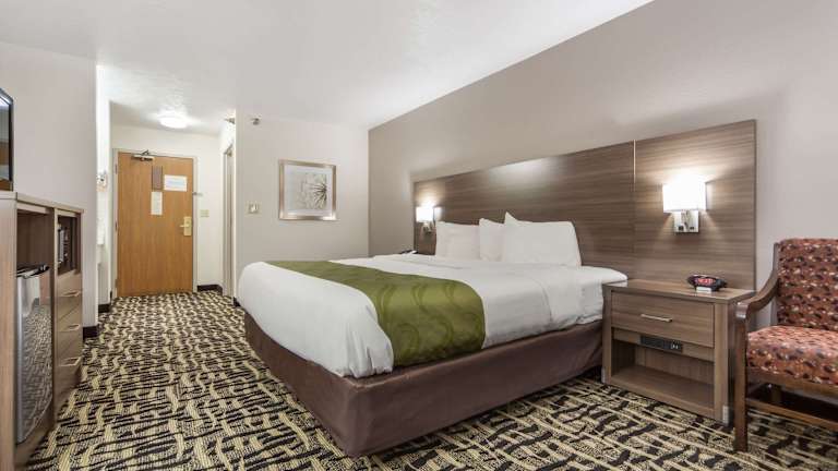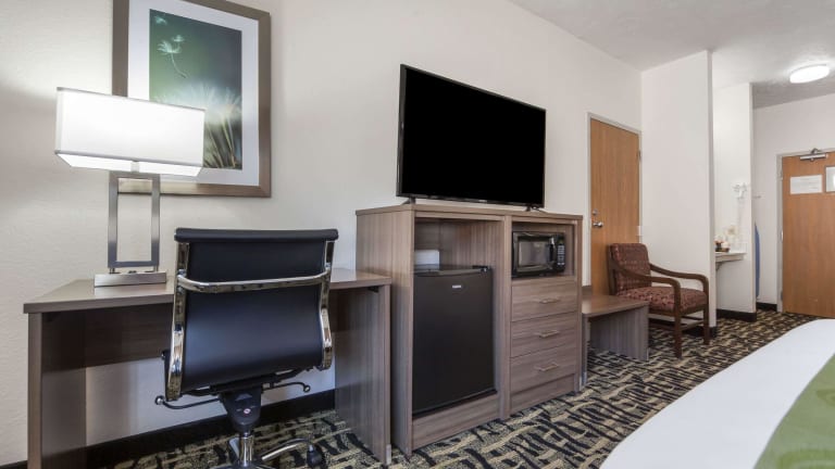 Die 54 Nichtraucherzimmer im Quality Inn & Suites West Omaha - NE Linclon sind geräumig und bieten den Gästen einen angenehmen Aufenthalt. Jedes Zimmer verfügt über Kaffeezubehör und einen Schreibtisch. Die Zimmer sind mit Teppichböden und hellen Holzmöbeln ausgestattet. Gäste können auch den Innenpool des Hotels nutzen, um sich zu entspannen und zu erfrischen.