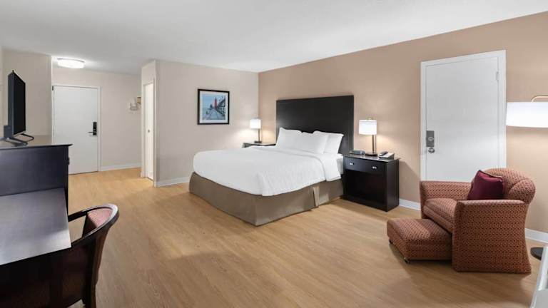 Die Zimmer sind ausgestattet mit Klimaanlage, Heizung, einem Doppelbett, Queensize- oder Kingsize-Bett. Eine Mikrowelle, ein Kühlschrank, eine Tee-/Kaffeemaschine sowie ein Safe, Schreibtisch und ein Fernseher mit Kabel-Empfang gehören zur Ausstattung. Die Badezimmer verfügen über Dusche und Badewanne mit Haartrockner und Kosmetikartikeln. Rollstuhlgerechte Zimmer sind verfügbar, ebenso Familien-, Nichtraucher- und Raucherzimmer.