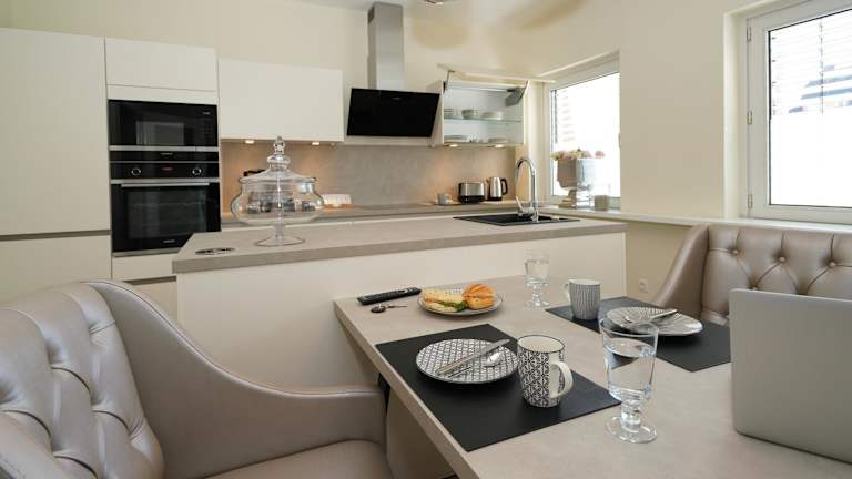 Die Zimmer im Quartier 23 sind mit Stadtblick, einem Sitzbereich, einem Flachbild-TV und einer voll ausgestatteten Küche ausgestattet. Zur Küche gehören ein Kühlschrank, ein Geschirrspüler, ein Ofen, eine Mikrowelle, eine Herdplatte, eine Kaffeemaschine und ein Wasserkocher. Jedes Zimmer verfügt über ein eigenes Badezimmer mit einer Dusche und einem Haartrockner.