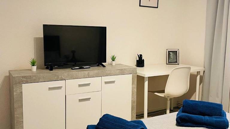 Die Ferienwohnung umfasst zwei Schlafzimmer, eine voll ausgestattete Küche mit Kühlschrank und Geschirrspüler, einen TV sowie einen Sitzbereich. Das Badezimmer ist mit einer Badewanne oder Dusche versehen. Handtücher und Bettwäsche werden bereitgestellt. Die Unterkunft ist als Nichtraucherbereich ausgewiesen und bietet Zugang für Gäste mit Mobilitätseinschränkungen.