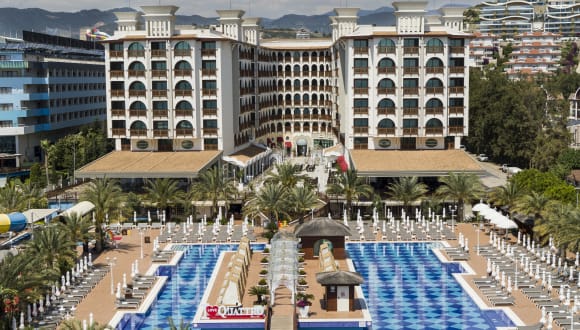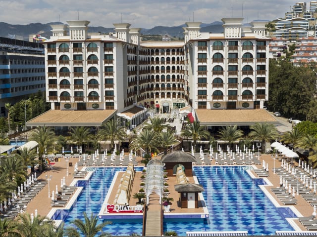 Es befinden sich insgesamt 438 Zimmer meerblick und Seitlich meerblick Das Hauptrestaurant bietet im geschlossenen Bereich Platz für 450 Personen und im offenen Bereich auf der Terrasse Platz für 800 Personen. Das Mexikan a’la Carte Restaurant bietet Platz für 50 Personen, Fish a’la carte Restaurant für 35 Personen, Quattro Italian A’la Carte Restaurant für 50 Personen. Im Beach Restaurant, im Caffe De Quattro Patisseria, an der Beach Bar, Lobby Lounge Bar, a’la Carte Bar und der Pool Bar werden den ganzen Tag über reichliche Sorten von Essen und Getränken serviert. Das Hotel verfügt über vier voneinander unabhängige Swimmingpools, zwei Konferenzräume und Ballsäle; Hallenbad, Fitnesscenter; Türkischen Hamam. Im Hotel bieten ein Geschäft , Geschenkartikel Geschäft, Friseur, Leder Boutiqe, Handtaschen Geschäft, Fotogeschäft ihre Dienstleistungen an.