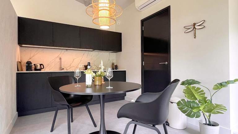 Das Ferienhaus im Quercus verfügt über ein komfortables Schlafzimmer, eine voll ausgestattete Küche mit Kühlschrank und Geschirrspüler sowie ein modernes Badezimmer mit Dusche. Der Wohnbereich bietet einen angenehmen Sitzbereich und ein TV-Gerät. Die Unterkunft ist klimatisiert, was für eine angenehme Temperatur während Ihres Aufenthalts sorgt. Kostenloses WLAN steht Ihnen zur Verfügung und Privatparkplätze sind ebenfalls vorhanden.