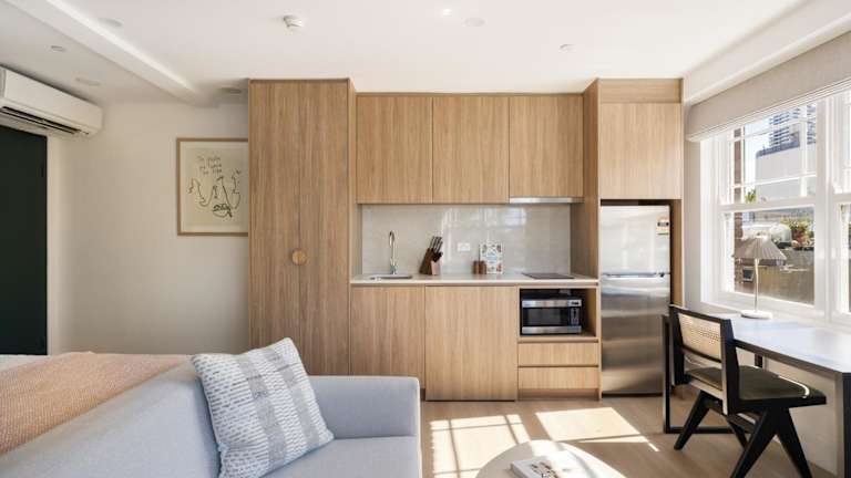 Das Sydney Potts Point Central Apartment Hotel bietet 68 stilvolle Studios auf 6 Etagen. Die Zimmer sind über einen Aufzug erreichbar und verfügen über Klimaanlage, Heizung, einen Schreibtisch und einen Flachbild-TV. Einige Zimmer haben auch eine Kochnische mit Kühlschrank, Mikrowelle und Toaster. WLAN steht den Gästen im gesamten Hotel kostenfrei zur Verfügung.