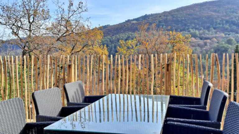 Das Ferienhaus beinhaltet drei Schlafzimmer sowie zwei Badezimmer. Zur Ausstattung gehören Bettwäsche, Handtücher, ein Fernseher mit Satellitenkanälen, ein Essbereich und eine voll ausgestattete Küche. Zudem gibt es eine Terrasse mit Blick auf die Berge. Die Unterkunft ist klimatisiert und verfügt über Gartenmöbel.