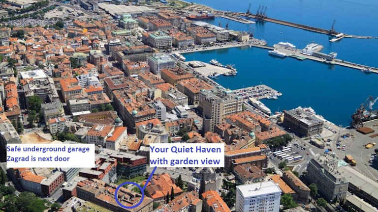 Quiet Haven*** Rijeka Center bietet eine Ferienwohnung mit Gartenblick und modernem Komfort. Die Unterkunft wird privat geführt und bietet Platz für bis zu zwei Gäste. Der Check-in ist ab 15:00 Uhr und der Check-out bis 10:00 Uhr möglich. Es sind keine Junggesellen-/Junggesellinnenabschiede oder ähnliche Feiern erlaubt. Die Unterkunft ist eine Nichtraucherunterkunft.