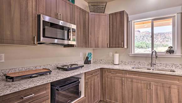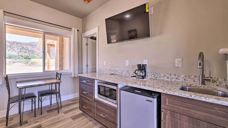 Das Hotel Quiet Kanab Home with Panoramic Views and Porch! ist ein ruhiges und gemütliches Ferienhaus in Kanab. Es bietet einen atemberaubenden Panoramablick und eine Veranda, auf der Sie die schöne Umgebung genießen können. Mit kostenfreiem WLAN in allen Bereichen der Unterkunft bleiben Sie immer verbunden. Das Ferienhaus verfügt über eine Terrasse, 2 Schlafzimmer, ein Wohnzimmer und eine gut ausgestattete Küche. Handtücher und Bettwäsche werden gestellt, um Ihren Aufenthalt so angenehm wie möglich zu gestalten. Der nächstgelegene Flughafen ist der 121 km entfernte Page Municipal Airport.