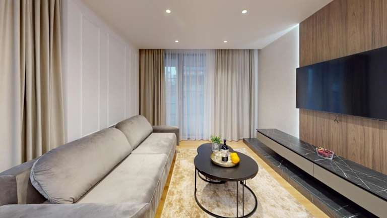 Die Ferienwohnung umfasst 2 Schlafzimmer, ein Wohnzimmer, eine voll ausgestattete Küche mit Kühlschrank und Kaffeemaschine sowie 2 Badezimmer, die jeweils mit einem Bidet und einer Dusche ausgestattet sind. Handtücher und Bettwäsche sind ebenfalls vorhanden.