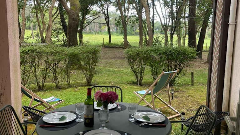 Die Unterkunft befindet sich in Moliets-et-Maa, nur 3 km von Plage Centrale entfernt. Weitere wichtige Orte sind der Bahnhof Dax in 36 km Entfernung und die Sainte-Marie-Kathedrale, die 37 km entfernt ist. Attraktive Naturlandschaften sind in der Nähe, darunter das Naturschutzgebiet Courant d'Huchet, 7,4 km entfernt, sowie der Golfplatz Seignosse in 22 km Entfernung. Der nächste Flughafen ist der Flughafen Biarritz, 55 km von der Unterkunft gelegen.